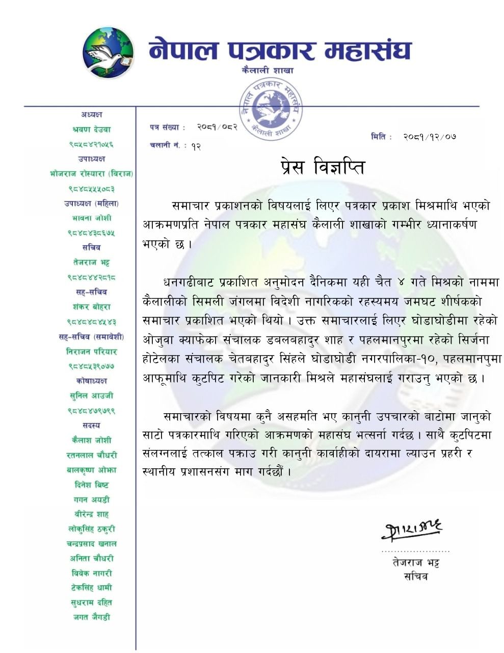 घोडाघोडी नगरपालिकाकै केही स्थानीयले विदेशी नागरिकसँग समन्वय गरिरहेको कुरा समेत सार्वजनिक भएको छ। सोही विषयमा समाचार सम्प्रेषण गरेपछि सुखडका पत्रकार प्रकाश मिश्रमाथि बिहीवार दिउँसो हातपात समेत भएको थियो ।