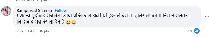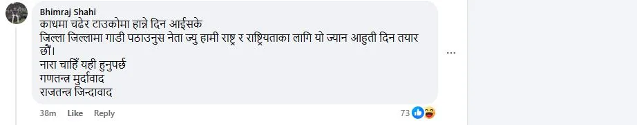 गणतन्त्र मुर्दावाद भन्ने बेला आयो पब्लिकले अब तिमीहरू ले बसमा हालेर लगेको मानिस नै राजतन्त्र जिन्दावाद भन्न बेर लाग्दैन है