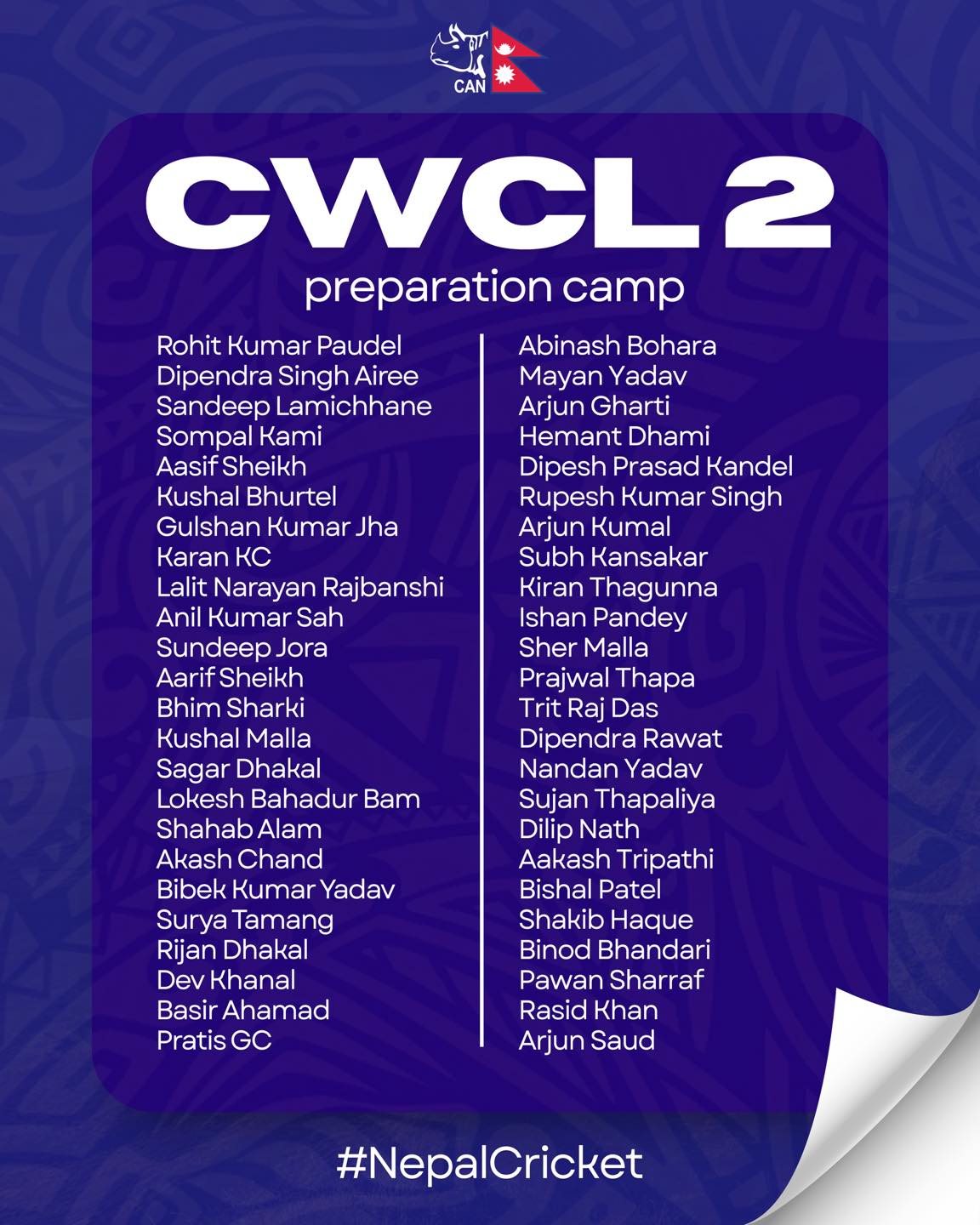 विश्वकप लिग–२ को आगामी सिरिजका लागि नेपाल क्रिकेट संघ (क्यान)ले ४८ खेलाडीलाई प्रारम्भिक चरणका लागि छनोट गरेको छ। आगामी जुनमा स्कटल्याण्डमा हुने त्रिकोणात्मक सिरिजका लागि प्रारम्भिक छनोट गरिएको हो ।