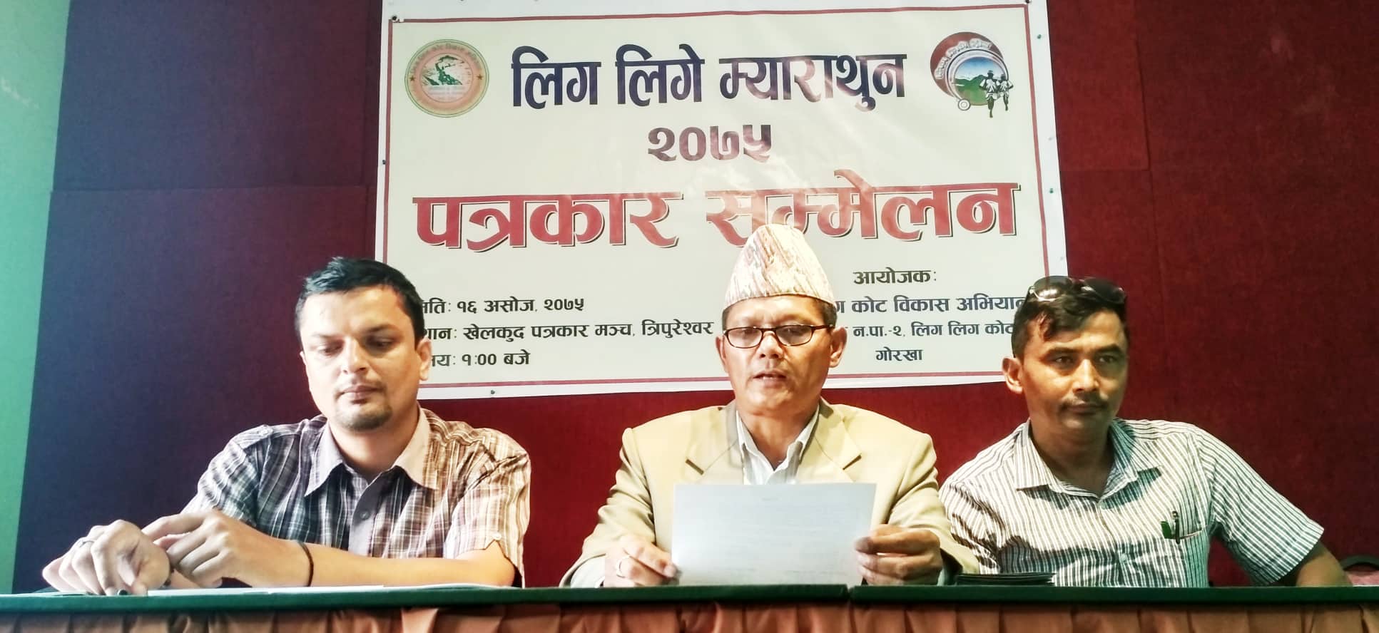 गोरखाको ऐतिहासिक लिगलिगे राजा छान्ने दौड प्रतियोगिता यही असोज २८ गते हुने भएको छ । लिगलिग कोट विकास अभियानले मंगलबार काठमाडौँमा पत्रकार सम्मेलन गर्दै हरेक वर्ष हुँदै आएको प्रतियोगिता यही असोज २८ गते गर्ने जानकारी दिइयो ।