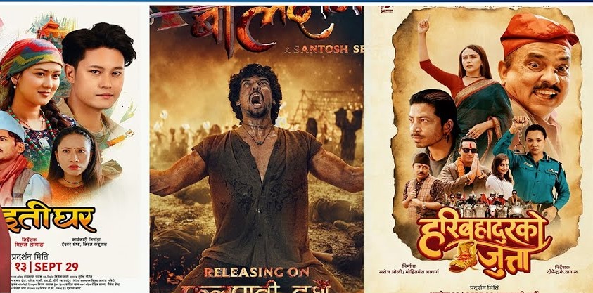 दशैंका अवसर पारेर तीन नेपाली चलचित्र प्रदर्शन भएका छन् ।फूलपातीदेखि चलचित्र ‘हरिबहादुरको जुत्ता’, ‘माइतीघर’ र ‘बलिदान’ नेपालभर प्रदर्शनमा आएका हुन् ।