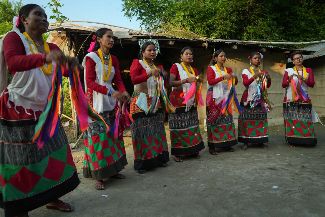 जति धेरै मादल बज्यो त्यति रौनक आउँछ । २० देखि २५ जना सखिया नाच्ने युवतीले सेतो रङको फरिया, रातो चोली र रातै रङको रिबन लगाउने गर्छन् ।