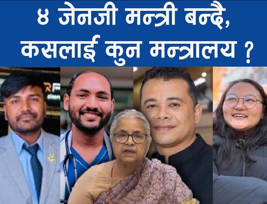 प्रधानमन्त्री कार्यालय स्रोतका अनुसार सोमबारसम्म शपथ गर्नेगरी चार जना नयाँ मन्त्री नियुक्त हुन लागेका हुन् । जेनजीहरूको प्रतिनिधित्व गरेर नयाँ मन्त्री हुनेहरूमा गणपतिलाल श्रेष्ठ, बब्लु गुप्ता, रामजी राम र टासी ल्हाजोम रहेको दाबी गरिएको छ ।