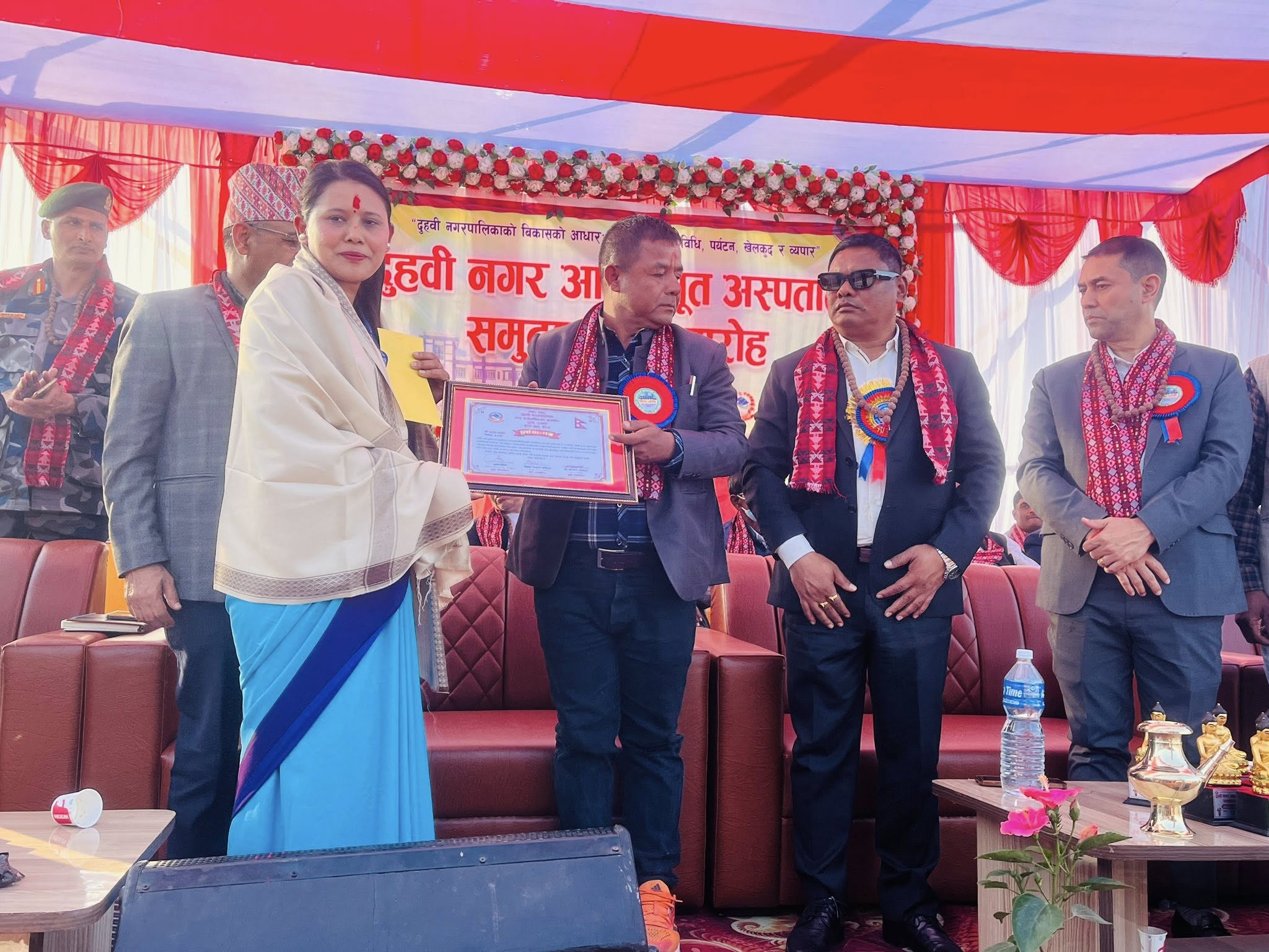 कार्यक्रममा नगर अस्पताल निर्माणमा योगदान गर्ने कर्मचारीहरुलाई नगद ११ हजार र दोसल्ला सहित सम्मान गरिएको थियो। २०७८ साल माघ २ गते शिलन्यास गरिएको अस्पताल तोकिएकै समयमै निर्माण सम्पन्न भएको निर्माण आयोजनाले जनाएको छ।