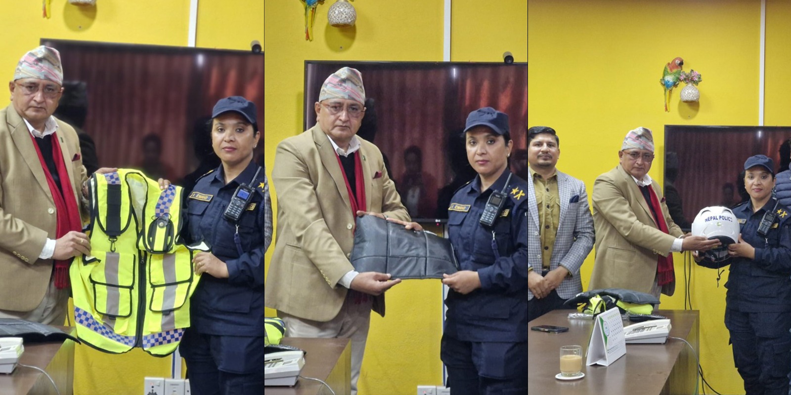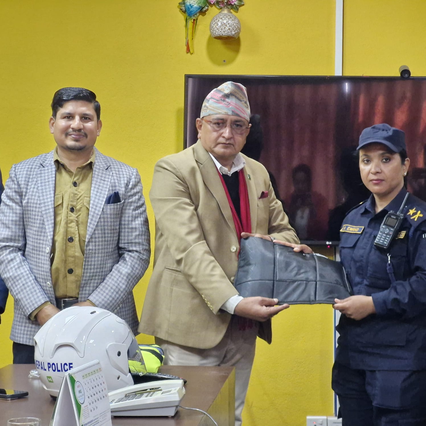 संस्थाले प्रहरी वृत्त सातदोबाटोका लागि दु्रत प्रतिक्रिया टोलीका लागि आवश्यक पर्ने २५ थान फ्लोरोसेन्ट ज्याकेट, नी गार्ड, चेस्ट गार्ड र हेल्मेट हस्तान्तरण गरेको हो ।