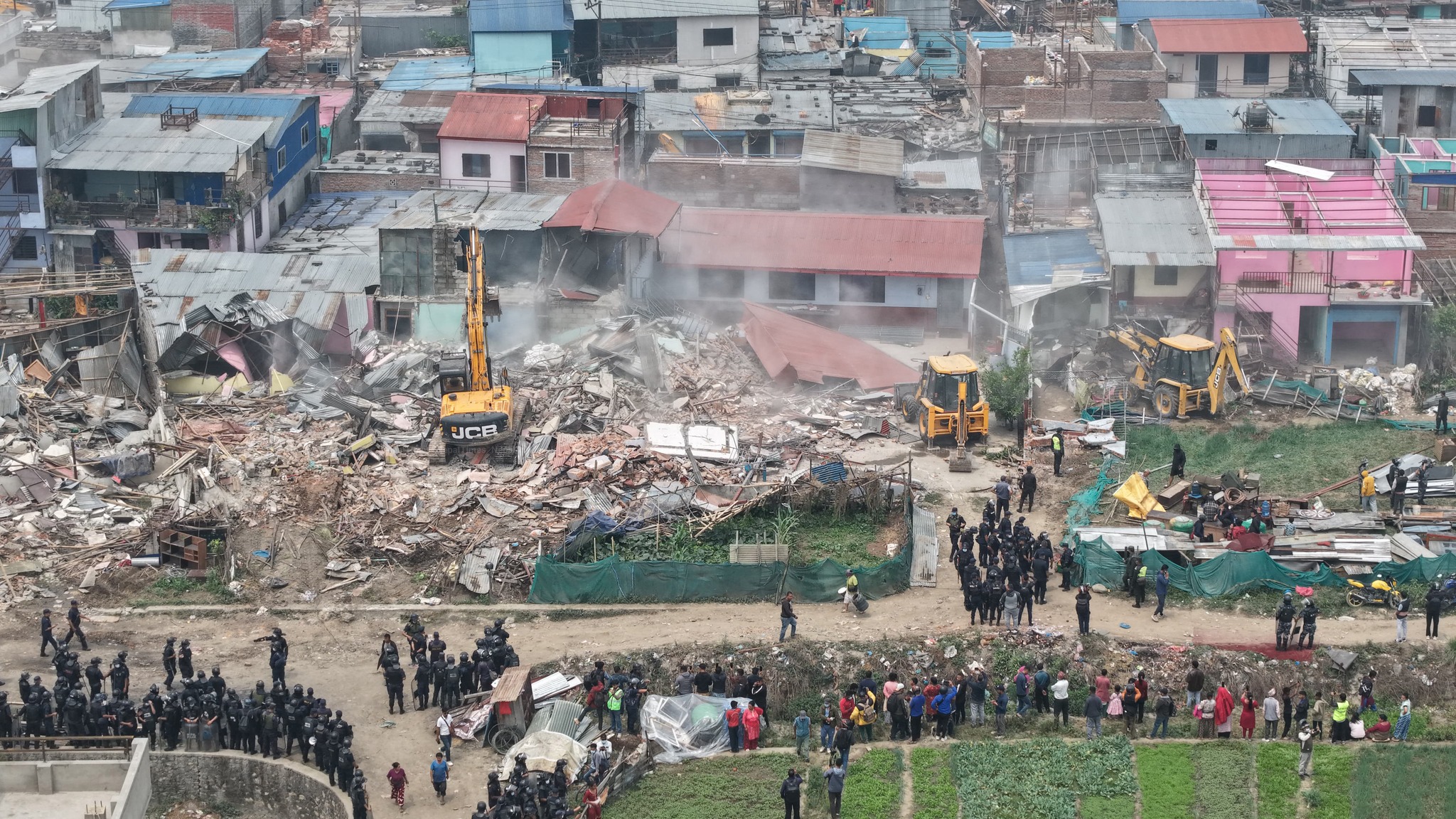 करिब १२ हजारको संख्यामा प्रहरी तैनाथीसहित महानगरका डोजर चल्दै गर्दा बस्तीका अधिकांश परिवार आफैँ सामान निकालेर निस्किएका थिए । कतिपय परिवारलाई सामान निकाल्न प्रहरीले सघाएको थियो । परिस्थिति असामान्य हुन सक्ने आकलन गरेको प्रहरी पानीको फोहरा, अश्रुग्यास, लाठीसहित तैनाथ थियो ।