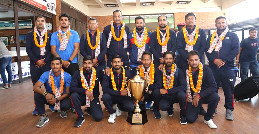 विश्व टी–२० एशिया छनोट समूह ‘बी’को विजेता बनेको नेपाली राष्ट्रिय क्रिकेट टोली आज अपराह्ना स्वदेश फर्केको छ । नेपाली टोलीलाई त्रिभुवन अन्तर्राष्ट्रिय विमानस्थलमा खेलकुद पदाधिकारीसहित समर्थकले स्वागत गरेका थिए ।