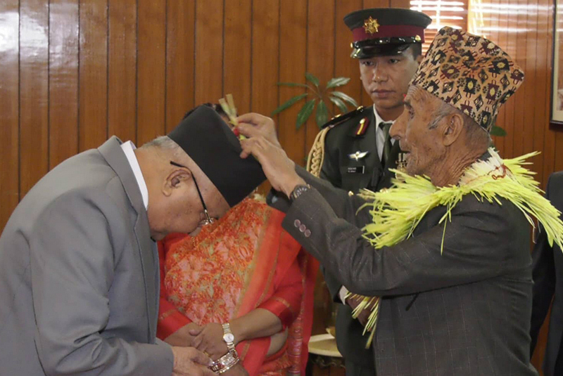केपी शर्मा ओलीले पिता मोहनप्रसाद ओलीको हातबाट दशैंको टीका ग्रहण गरेका छन्।
