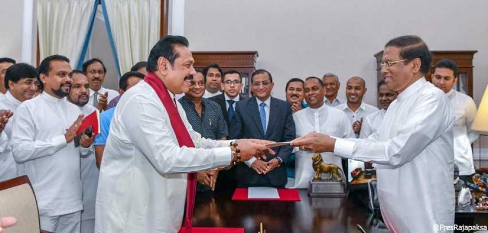 आफ्नै पार्टीले सरकार छाड्ने निर्णय गरेपछि राष्ट्रपति सिरिसेनाले आफ्नै प्रतिस्पर्धी महेन्द्रा राजापाक्षेलाई शुक्रबार प्रधानमन्त्रीमा नियुक्त गर्दै शपथसमेत खुवाएका छन् ।