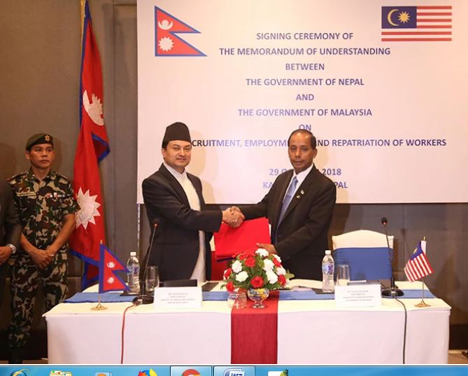 नेपालीले म्यानपावर व्यवसायीलाई लाखौं रुपैयाँ बुझाएर मलेशिया जाने गरेका छन् । समझदारीपत्रमा नेपालको तर्फबाट श्रम, रोजगार तथा सामाजिक सुरक्षामन्त्री गोकर्ण विष्ट र मलेसिया सरकारको तर्फबाट मानव संशाधन मन्त्री एम कला सेरगनले हस्ताक्षर गरेका छन् ।
