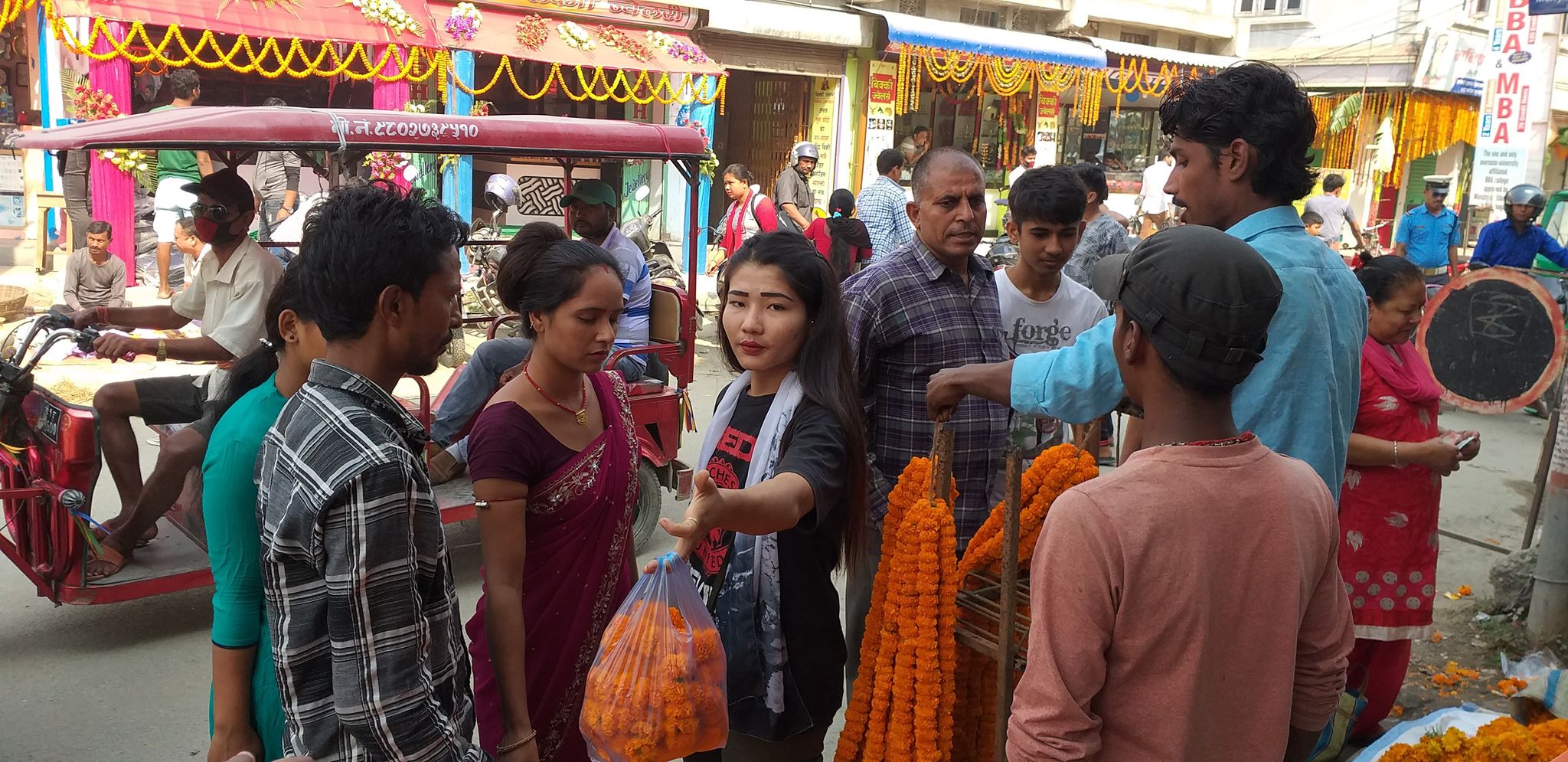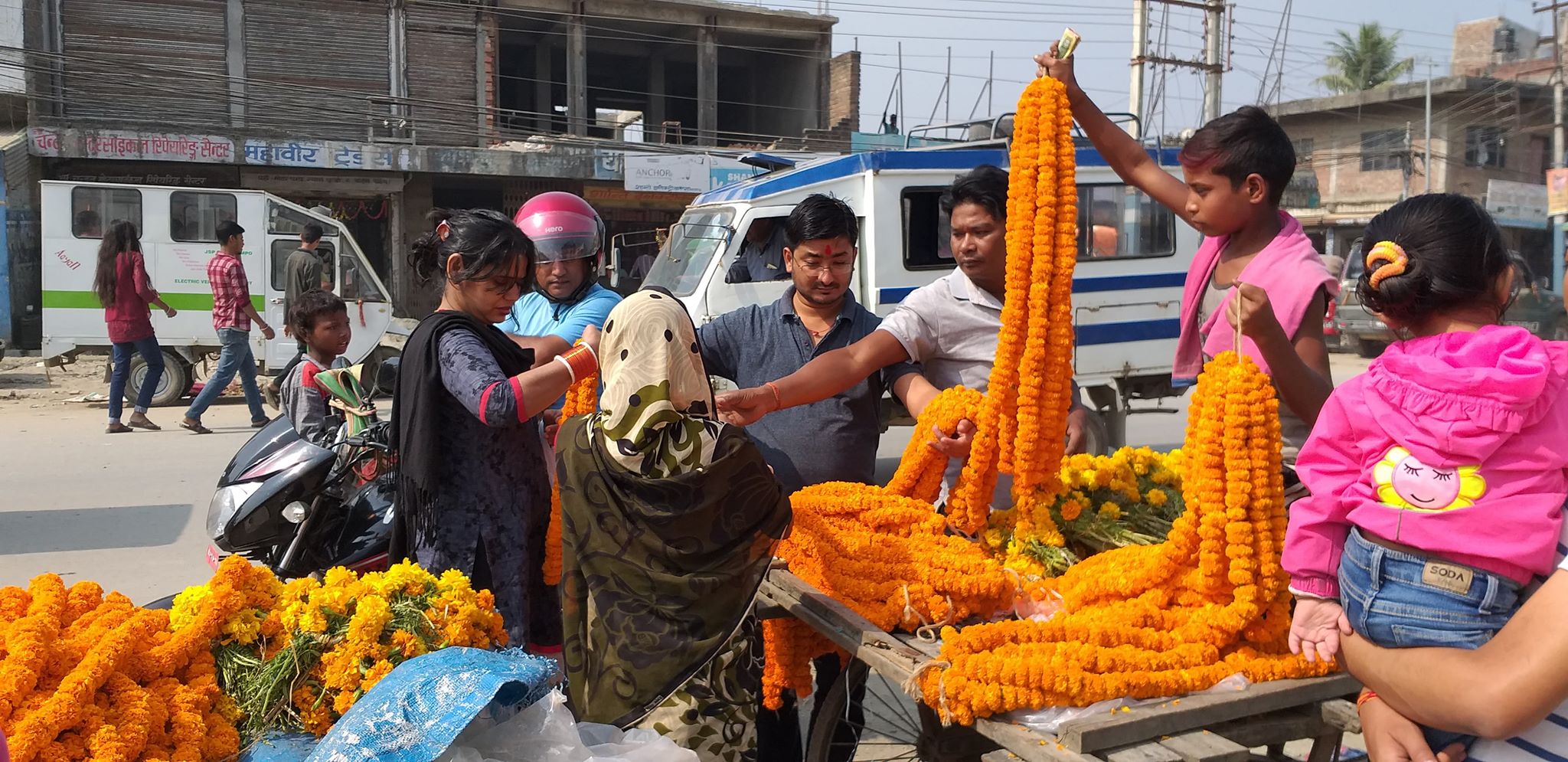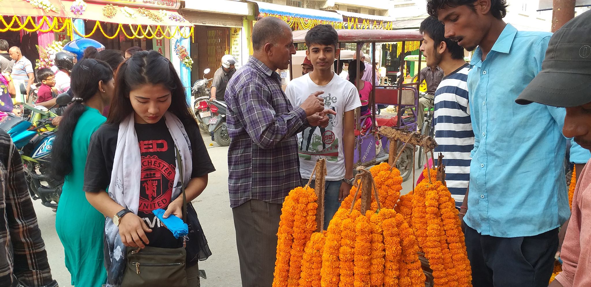 तिहारले छपक्कै छोपेपछि बजार पसल तथा घरहरु विभिन्न फूल तथा बत्तीहरुले बेहुली झै सजाईएको छ । तिहारमा प्रयोग गरिने सयपत्री, मखमली जस्ता फूल तथा तिनबाट बनेका माला लक्ष्मीपूजा गर्न र दाजुभाइलाई लगाइदिने गरिन्छ ।