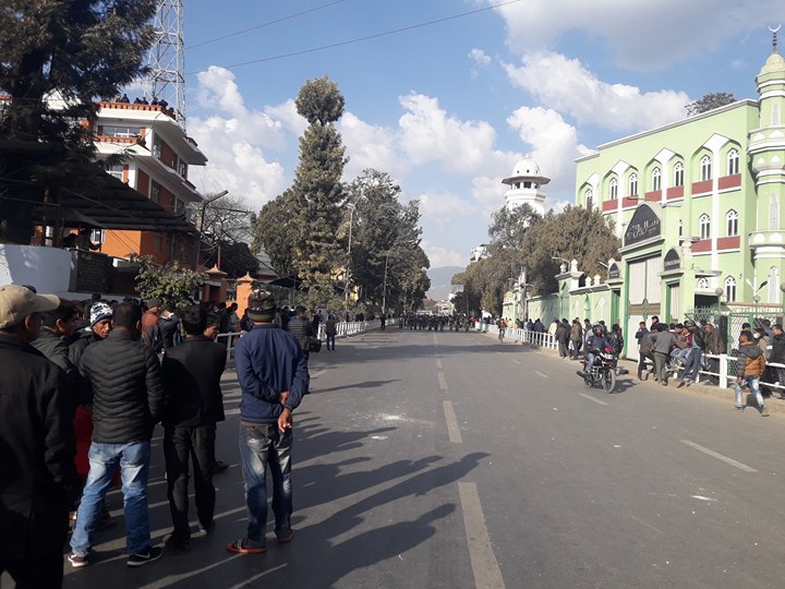 त्रिचन्द्र क्याम्पस अगाडि विद्यार्थीले प्रधानमन्त्री देउवा र प्रमुख निर्वाचन आयुक्त यादवको पुत्ला प्रहरीले खोसेपछि झडप भएको अनेरास्ववियुका उपाध्यक्ष सुनिता बरालले जानकारी गराउनुभयो ।