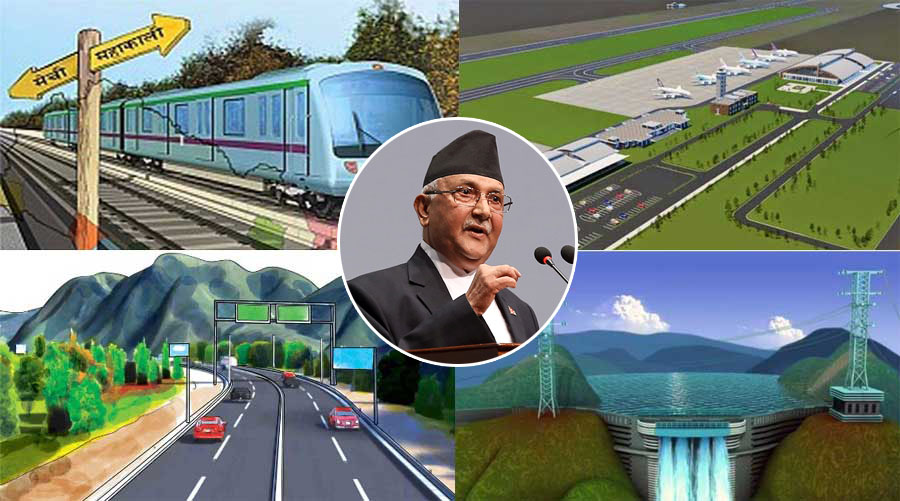 आयोजनाले सिक्टा सिंचाई आयोजना, बबई सिँचाई आयोजना, रानीजमरा कुलरिया सिँचाई आयोजना, भेरी बबई डाईभर्सन आयोजना, गौतम वुद्ध विमानस्थल, पोखरा विमानस्थल, निजगढ अन्तराष्ट्रिय विमानस्थल, काठमाडौं निजगढ फास्ट ट्रयाक, पुष्पलाल मध्यपहाडी लोकमार्ग, कोशी लोकमार्ग, कालगण्डकी करिडोर, कर्णाली करिडोर, हुलाकी राजमार्ग, मेलम्ची खानेपानी आयोजना, माथिल्लो तामाकोशी जलविद्युत आयोजना, लुम्बिनी विकास कोष र विद्युत प्रसारण आयोजनालाई सम्पन्न गर्ने लक्ष्य राखेको छ ।