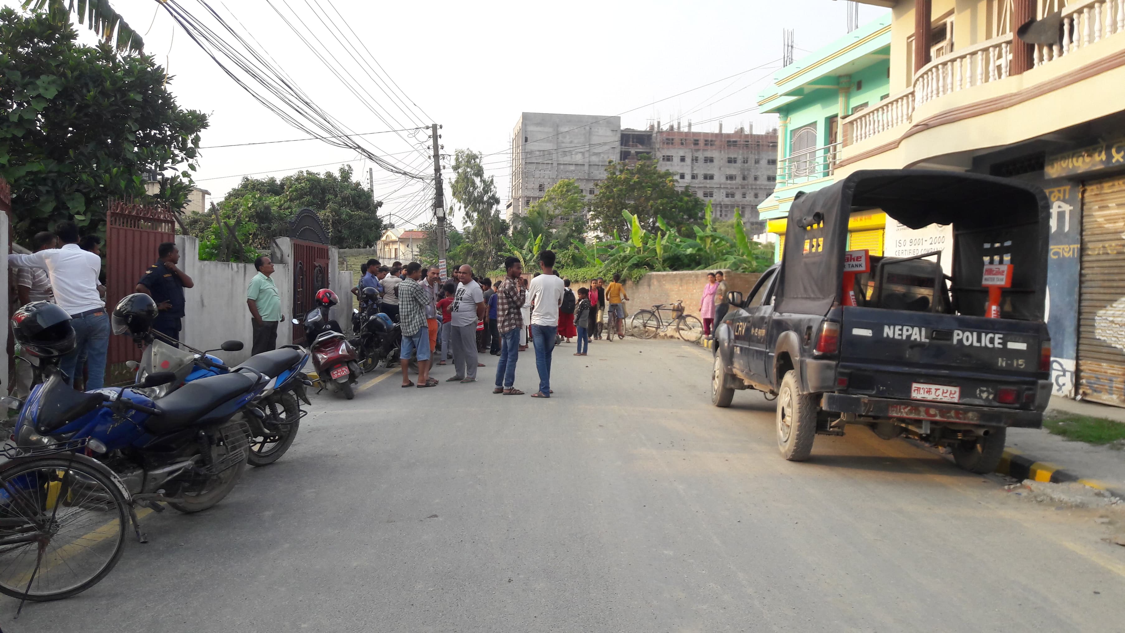 विराटनगर, जेठ ७ विराटनगर–६ स्थित एक घरमा एक व्यक्तिको झुण्डिएको अवस्थामा शव फेला परेको छ । प्रहरीका अनुसार ४२ वर्षिय सुमितकुमार कट्वाल झुन्डिएको अवस्थामा फेला परेका हुन । घटनाको अनुसन्धान जारी रहेको प्रहरीले जनाएको छ । घटनाको थप विवरण आउन बाँकी छ ।