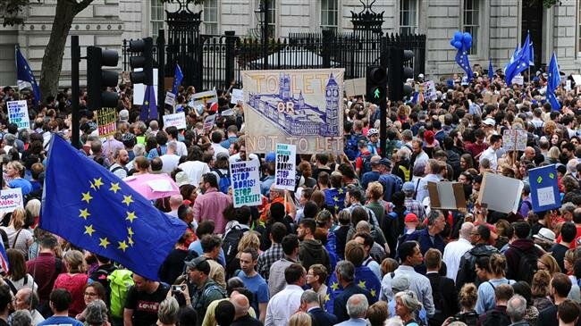 बेलायतका प्रधानमन्त्री बोरिस जोहन्सनले संसद निलम्बन गर्ने निर्णय गरेकोमा त्यसको विरुद्धमा लण्डनमा सर्बसाधारणले विरोध प्रदर्शन गरेका छन् ।