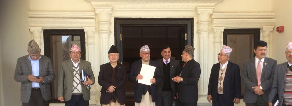 यसअघि ओली आफूलाई प्रधानमन्त्री नियुक्त गर्न एमाले र माओवादीले राष्ट्रपतिसमक्ष समर्थनको पत्र बुझाएका थिए। ओलीसहित नेकपा माओवादी केन्द्रका अध्यक्ष पुष्पकमल दाहाल, नारायणकाजी श्रेष्ठ, माधव नेपाल, ईश्वर पोखरेल, सुवास नेम्बाङ, अग्नी खरेल पत्रसहित शितलनिवास पुगेका थिए।
