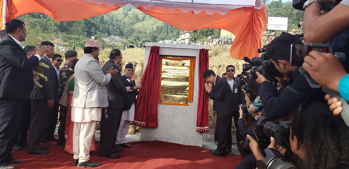 चन्द्रागिरि नगरपालिकास्थित दहचोकमा आयोजित एक विशेष समारोहका बीच प्रधानमन्त्रीले सुरुङमार्ग शिलान्यास गरेका हुन् । सडक विभाग अन्तर्गतको नागढुंगा सुरुङमार्ग आयोजनाले जापानी कम्पनी हाजमा–आन्दो जेभीलाई यो सुरुङमार्ग बनाउने ठेक्का दिएको छ ।