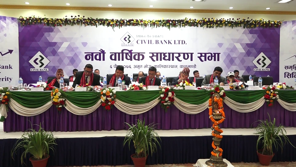 साधारणसभाले अन्य बैंक तथा वित्तीय संस्थासँग गाभ्ने गाभिने तथा स्वदेशी तथा विदेशी रणनीतिक साझेदारी भित्र्याउन आवश्यक काम गर्ने सम्बन्धमा सञ्चालक समितिलाई पूर्ण अख्तियारी प्रदान गर्ने निर्णय समेत गरेको छ । सिभिल बैंकले देशभर १ सय १ वटा शाखा कार्यालय, ६ वटा शाखारहित बैंकिङ सेवा, एकवटा एक्सटेन्सन काउन्टर तथा एटिएम काउन्टरहरुमार्फत बैंकिङ सेवा दिंदै आएको छ ।