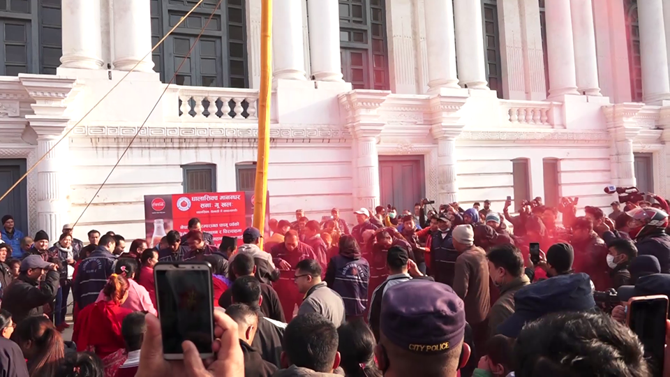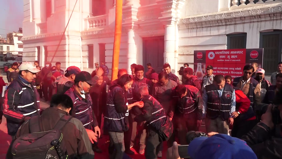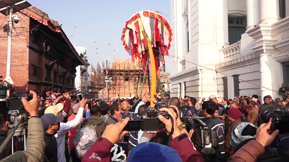 २० फागुन, काठमाडौं । रंगहरुको पर्व फागूपूर्णिमा (होली) सुरु भएको संकेत दिन काठमाडौंको वसन्तपुरमा विधिवत रुपमा चीर ठड्याइएको छ ।