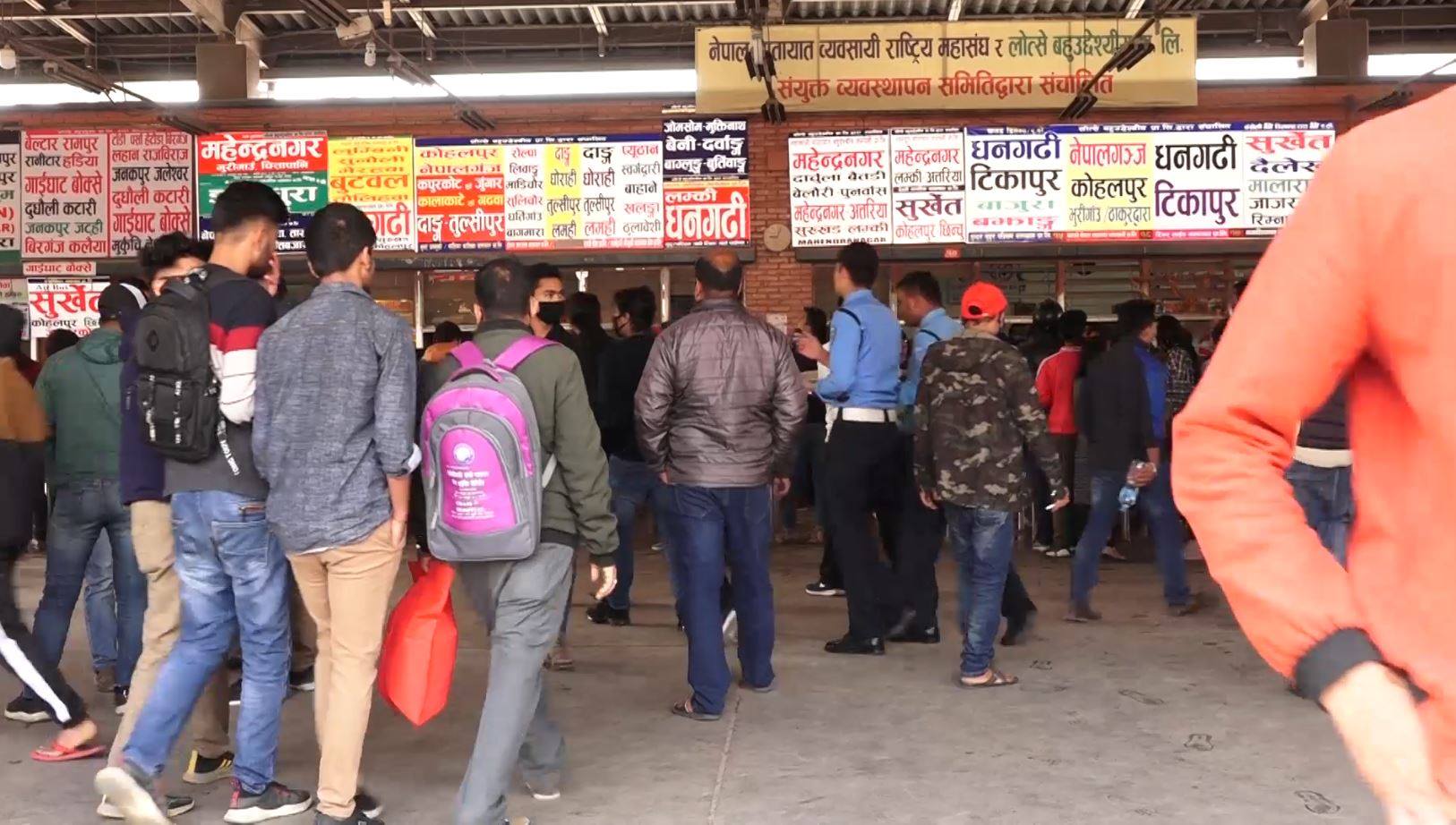 बसपार्क र काउन्टरहरुमा दशैतिहारमा जस्तै टिकट काट्नेहरुको भिड छ । बालबालिकाहरुको अन्तिम परीक्षा सकिएको र सरकारले समेत एक महिनाका लागि विद्यालय तथा कलेजहरु बन्द गर्ने निर्णय गरिसकेको छ ।