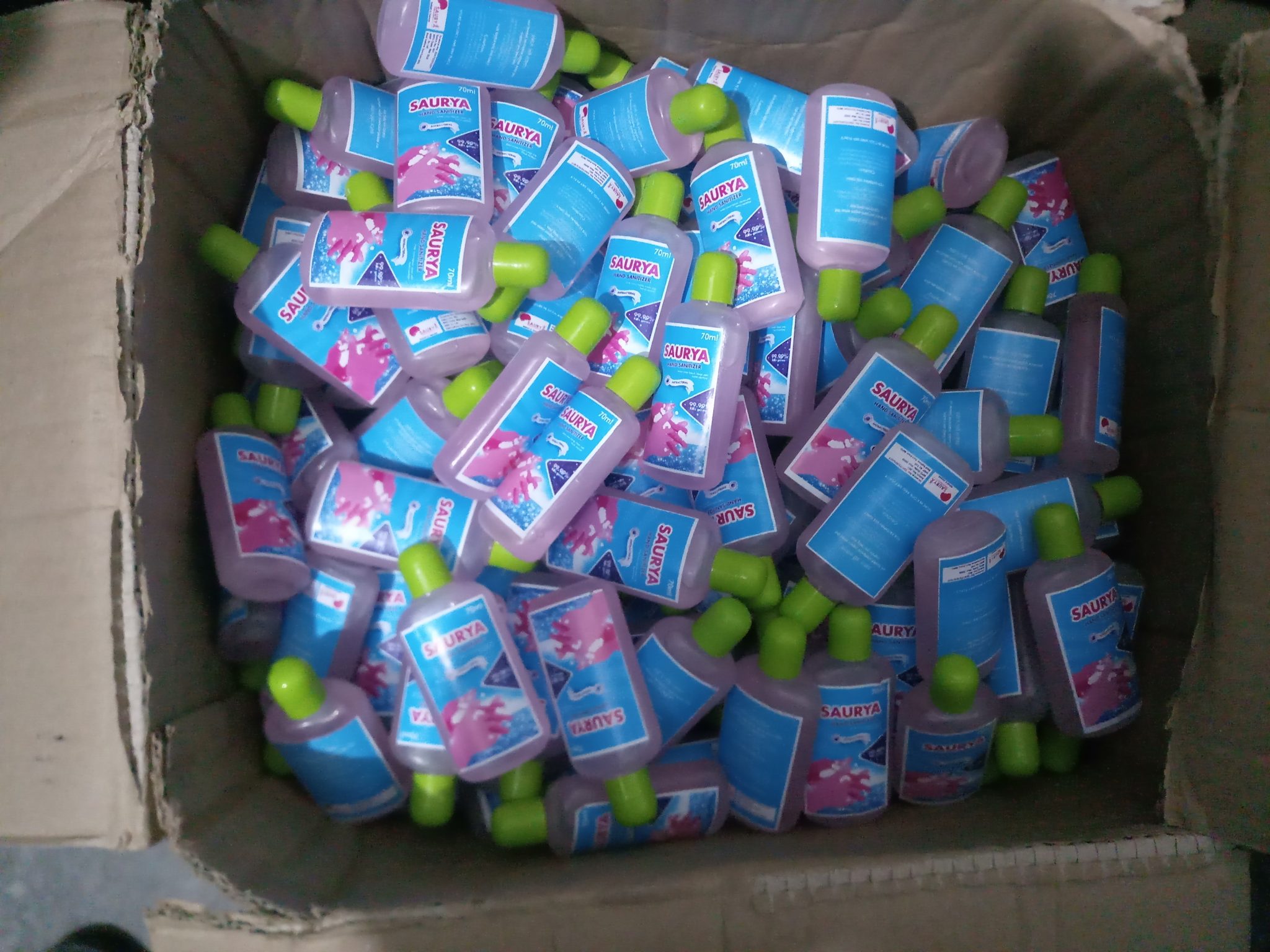 इटहरीको मनकामना टोलमा संचालनमा रहेको सौर्य केमिकलका संचालक स्थानीय ३० बर्षीय अतित गुरागाँईले सम्बन्धीत कुनै पनि निकायबाट अनुमती नलिई सौर्य नामक ह्याण्ड सेनिटाईजर उत्पादन गरी इटहरी ६ का ४५ बर्र्षीय अमर जितगोस्वामीको कस्मेटीक पसल जे.बी. ईन्टप्राईजेजमा भण्डारण गरी राखेको अवस्थामा मापदण्ड बिपरीत उत्पादन गरिएको ठूलो मात्राको सेनिटाईजर सहित दुवै जनालाई पक्राउ गरिएको हो ।