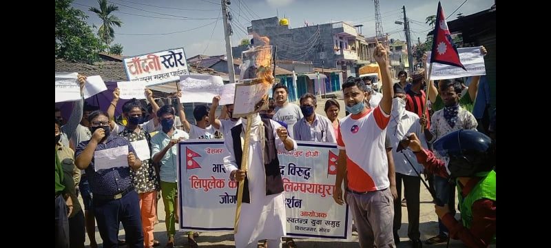 भारतले नेपाली भूमि लिपुलेकमा सडक बनाएको विरोधमा नेपाल–भारत सीमा नजिक भारतीय प्रधानमन्त्री नरेन्द्र मोदीको पुत्ला दहन भएको छ ।स्वतन्त्र युवा समूह बिराटनगरले भारतीय सेना फिर्ता गर्नुको सट्टा लिपुलेक हुदै मानसरोवर जाने सडक निर्माण गरेको भन्दै त्यसको बिरोधमा जोगबनी नाकावारि बिराटनगर–१७ रानीभन्सार २ नम्वर ढाट नजिकै पुत्ला दहन गरिको हाे ।