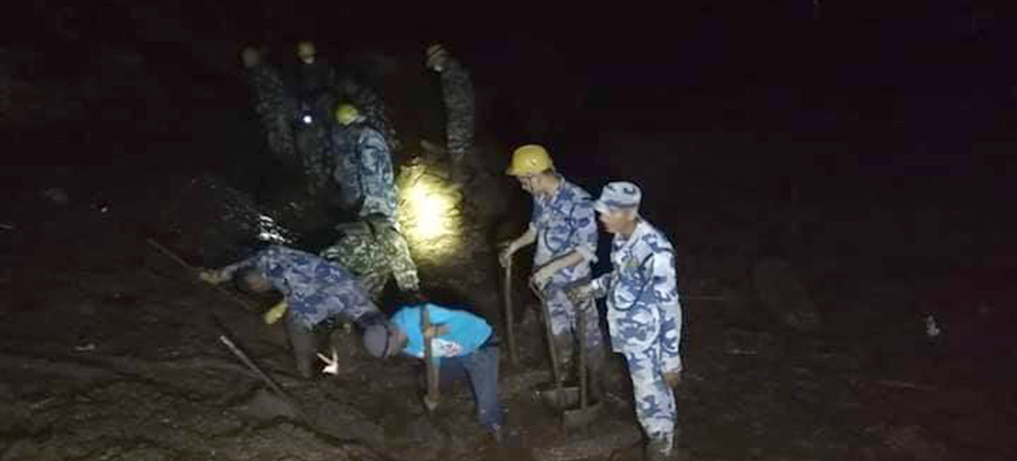 नेपाल प्रहरी, सशस्त्र र नेपाली सेनाले राति करिब २ बजेसम्म कुटो, कोदालो र फरुवाले खोस्रिए पनि अरु व्यक्तिहरुको पत्तो लाग्न सकेको थिएन । राती वर्षा भएको र अध्यारोका कारण खोजी कार्य गर्न कठिन भएकाले बिहानैदेखि नेपाल प्रहरी, नेपाली सेना र स्थानीयको सक्रियतामा खोजीकार्य जारी राखिएको अध्यक्ष पाध्याले बताए ।