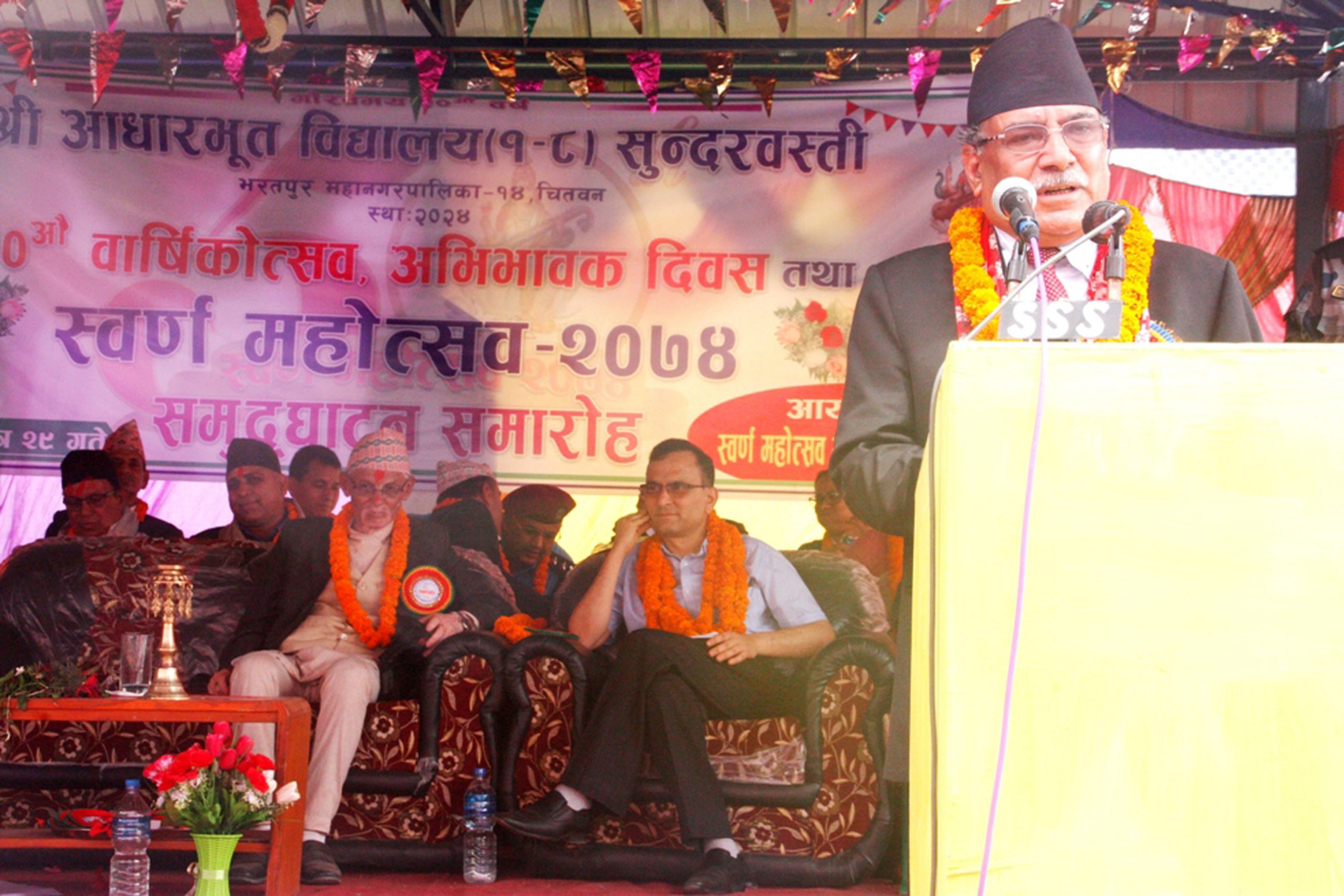 पश्चिम चितवनको सुन्दरबस्तीस्थित आधारभूत विद्यालयको स्वर्ण महोत्सवको आज उद्घाटन गर्दै उनले सामुदायिक विद्यालयको भौतिक पूर्वाधारको विकास र शैक्षिक गुणस्तर वृद्धि गर्नुपर्ने बताउँदै भने, “निजी विद्यालयलाई विस्तारै नियन्त्रण गर्नेतिर जानुपर्छ, सामुदायिक विद्यालयतर्फ आकर्षण बढाउनेतर्फ सरकारको जोड रहनेछ ।”