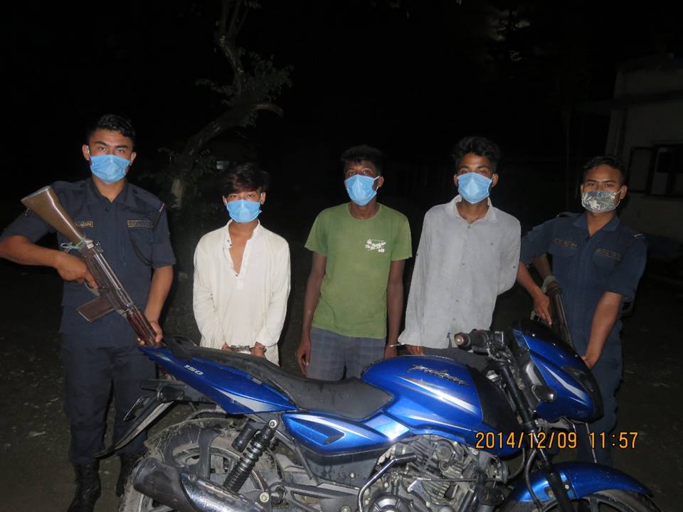 पथरी शनिश्चरे नगरपालिका–२ काआतेजुङ राईले आफ्नो को ३४ प ६००४ नम्बरको मोटरसाइकल सोमवार राती करिव २ बजेको समयमा घरबाट नै हराएको भनी जानकारी गराएसंगै खोजतलासमा खटिएको प्रहरी टोलीले पथरी शनिश्चरे नगरपालिका–१० का २० बर्षीय निमा तामाङ , बेलबारी नगरपालिका–२ का २० बर्षीय पृतिमान भण्डारी र २२ बर्षीय अभिषेक कट्टेललाई चोरी भएको मोटरसाइकलसहित पक्राउ गरेको हो ।