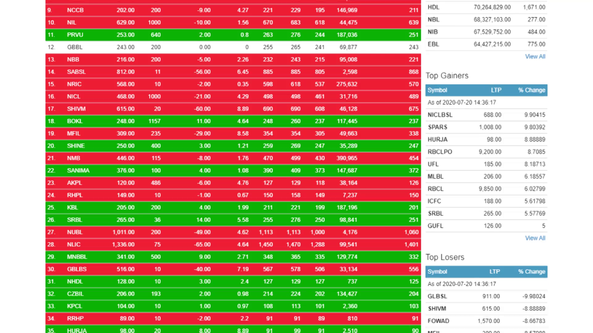 यसदिन सबैभन्दा धेरै कारोबार एनएमबी बैंकको २० करोड १४ लाख ९९ हजार रुपैयाँ बढीको भएको छ । त्यस्तै नेपाल पुनर्बीमा कम्पनी, एनआईसी एसिया बैंक, नेपाल लाइफ इन्स्योरेन्स, नबिल बैंकको शेयर कारोबार १० कारोड रुपैयाँ भन्दा बढीको भएको छ । नेप्से ऋणात्मक भएपनि युनाइटेड फाइनान्स, एनआइसी एसिया लघुवित्त वित्तीय संस्था, स्पर्स लघुवित्त वित्तीय संस्था लगायतका कम्पनीका शेयरधनीले झण्डै १० प्रतिशतले कमाएका छन् । गुराँस लघुवित्त वित्तीय संस्था र मन्जुश्री फाइनान्सका शेयरधनीले भने झण्डै १० प्रतिशतले गुमाएका छन् । आइतबार सेयर बजारमा परिसूचक नेप्से ६ प्रतिशतले बढ्दा सर्किट लागेर कारोबार स्थगित भएको थियो । बजार खुलेको एक घण्टा आठ मिनेटमा परिसूचक नेप्से ६ दशमलव शुन्य चार प्रतिशत अर्थात ८४ दशमलव २६ अंकले बढ्दा तेस्रोपटक सर्किट लागेर कारोबार स्थगित भएको थियो ।