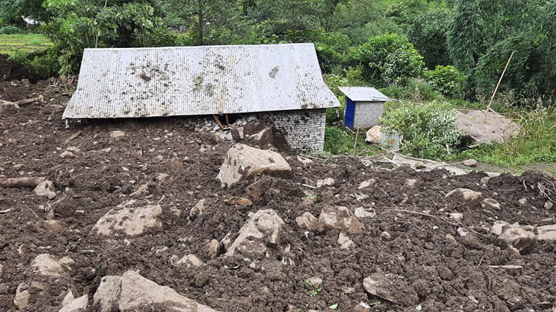 लमजुङमा पहिरो खस्दा १८ वटा घरहरु पुरिए, गाँउका सबै घरमा क्षति