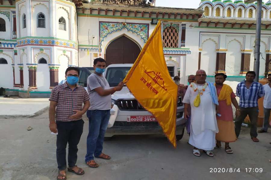 जनकपुरधामबाट चाँदीका इँटा बोकेर नेपाली टोली भारतको उत्तर प्रदेश राज्यस्थित अयोध्या प्रस्थान गरेको छ । भारतीय प्रधानमन्त्री नरेन्द्र मोदीले बुधबार भारतको अयोध्यामा गर्ने भगवान श्री राम मन्दिरको भूमि पुजन (शिल्यानास) कार्यक्रममा जनकपुरधामबाट चाँदीको इँटा र जनकपुरको माटोसहित श्री जानकी मन्दिरका महन्थ त्यसतर्फ गएका हुन् ।