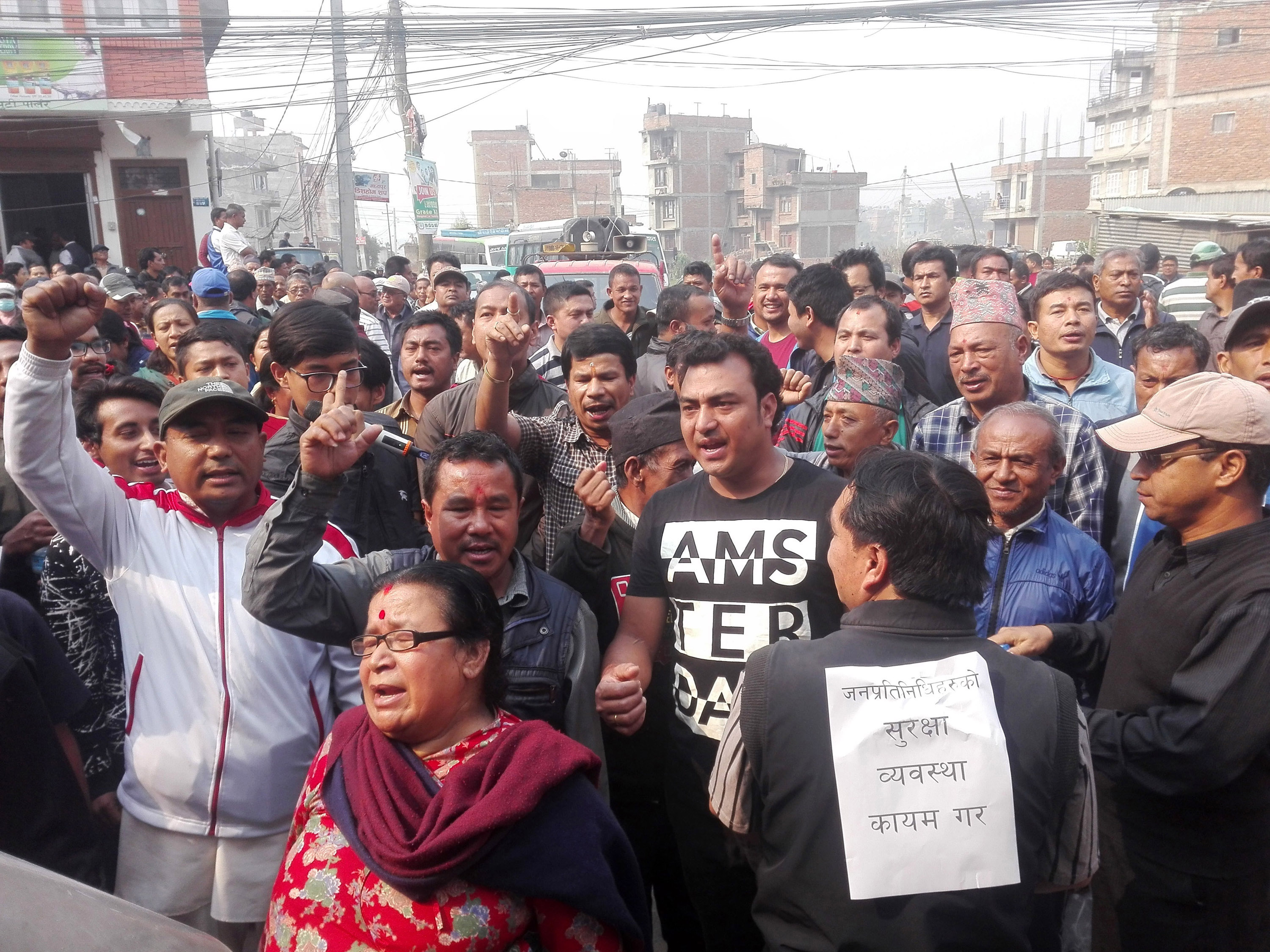 स्थानीयवासीले प्रहरी वृत्त थिमि घेराउ गर्र्दै दोषीलाई तत्काल पक्राउ गरी कडा कारबाही गर्न, जनप्रतिनिधिको सुरक्षाको व्यवस्था गर्न माग गर्दै नाराबाजी गरेका थिए ।