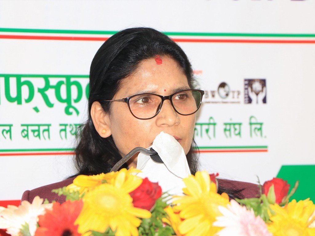 विपन्न वर्गलाई सहकारीमा आबद्ध गराई स्वरोजगारका अवसर दिई जिविकोपार्जनका आधार तयार गर्नुपर्ने भन्दै उनले सहकारितामा व्यावसायिकता आउनका निम्ति अनिवार्य व्यवस्था गर्नैपर्ने बताइन् ।