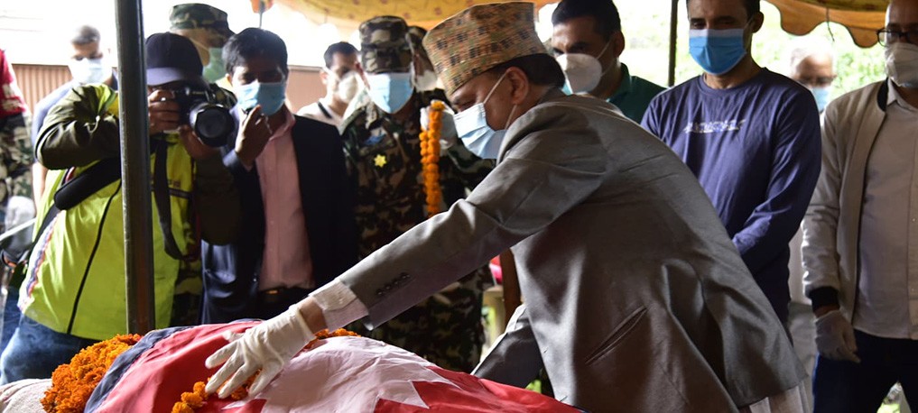 रक्षामन्त्रीले ओढाए राष्ट्रकविको पार्थिव शरीरमा राष्ट्रिय झण्डा