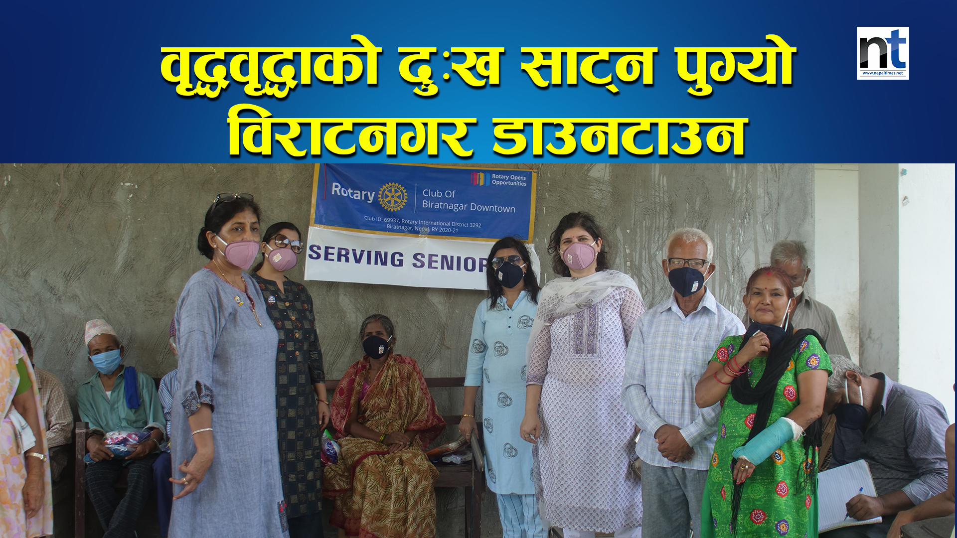 बुधबार वृद्धाश्रममा रोटरी क्लब अफ विराटनगर डाउनटाउनले वरिष्ठ सेवा (सर्भिङ सिनियर्स) कार्यक्रमको आयोजना गर्दै आश्रममा रहेका वृद्धवृद्धाहरुलाई खाद्यान्न, लत्ताकपडा, मास्क र रोगप्रतिरोधात्मक क्षमता वृद्धिका लागि आयुर्वेदिक औषधि लगायतका सामग्री वितरण गरेको हो ।