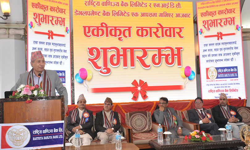 बुधबार आयोजित कार्यक्रममा अर्थमन्त्री डा. युवारज खतिवडाले दुई बैंकको एकीकृत कारोबारको सुभारम्भ गरेका हुन् । दुई बैंक गाभिएपछि भने राष्ट्रिय वाणिज्य बैंकको नाममा कारोबार हुनेछ ।