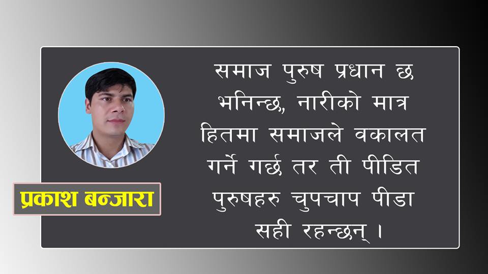 जो कोहीको पनि स्वतन्त्र जिबनलाई कुन्ठित पारियो भने या शारीरिक र मानसिक रुपले बिचलित बनाइयो भने त्यसलाई हिंसा भएको मान्नु पर्छ । समाज पुरुष प्रधान छ भनिन्छ, नारीको मात्र हितमा समाजले वकालत गर्ने गर्छ तर ती पीडित पुरुषहरु चुपचाप पीडा सहि रहन्छन् । आफ्नै घरमा पीडित हुँदा र हुनुपर्दा पुरुषहरू प्रतिष्ठाकै कारण पनि आफ्नो घरको कुरा बाहिर ल्याउन चाहादैनन् ।