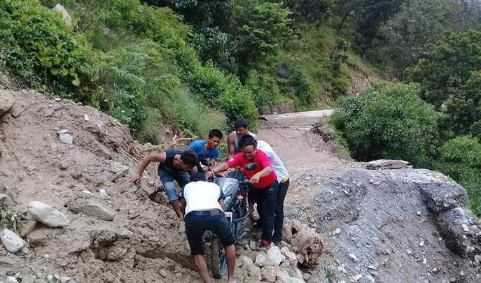 सडकको माथिपट्टिबाट ठूलो ढुंगा आएर बीच सडकमा अड्किएपछि बाटो बन्द भएको जिल्ला प्रहरी कार्यालय, बाजुराका प्रहरी नायब उपरीक्षक हरिबहादुर वलीले बताएका छन्। जेसिवी प्रयोग गरेर बाटो खोल्न खोज्दा सम्भव नभएपछि स्काभेटर नै प्रयोग गर्नुपर्ने भएको प्रहरी उपरीक्षक वलीले बताए।