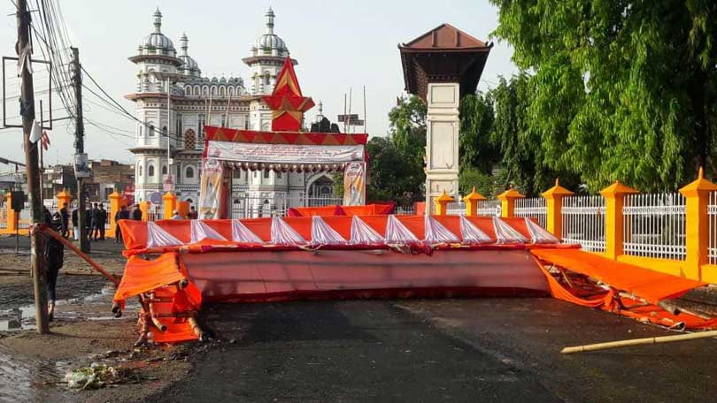 जनकपुरधाम, २६ वैशाख ः भारतीय प्रधानमन्त्री नरेन्द्र मोदीको आसन्न जनकपुरधाम भ्रमणका लागि बनाइएको स्वागतद्वार र अभिननन्दन स्थल गए रातिको हावाहुरी र वर्षाले प्रभावित बनाएको छ ।