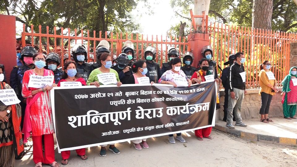 पशुपतिनाथको प्राचीनता मास्ने गरी कोषले गुरुयोजना तयार गरेको भन्दै स्थानीयले दोस्रो चरणको विरोध अन्तर्गत बुधबार कोषको कार्यालय रहेको क्षेत्रलाई मानव साङ्लो बनाई घेराउ गरेका हुन् ।
