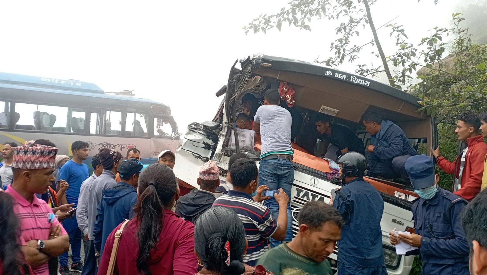 दोलखामा २ यात्रुवाहक बस ठोक्किए, २१ जना घाइते
